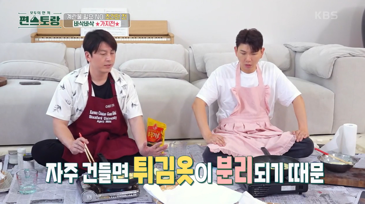 2분뒤가 뒤집을 타이밍!! 자꾸 건들면 튀김옷이 분리된답니다.