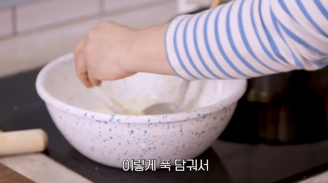 반죽은 비율만 잘 맞춰서 쪼르륵 흐를 정도의 점도로 물을 넣어 주세요.