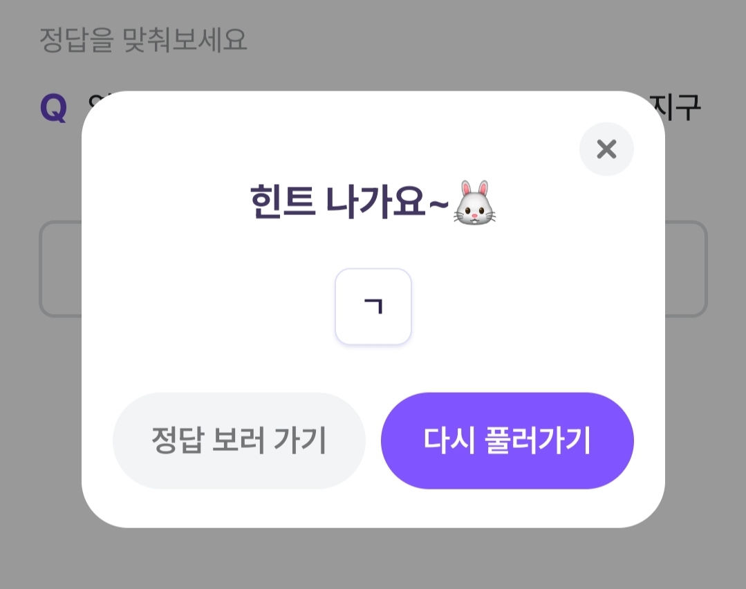 한글자 정답은 저는 처음이었던 듯;;,