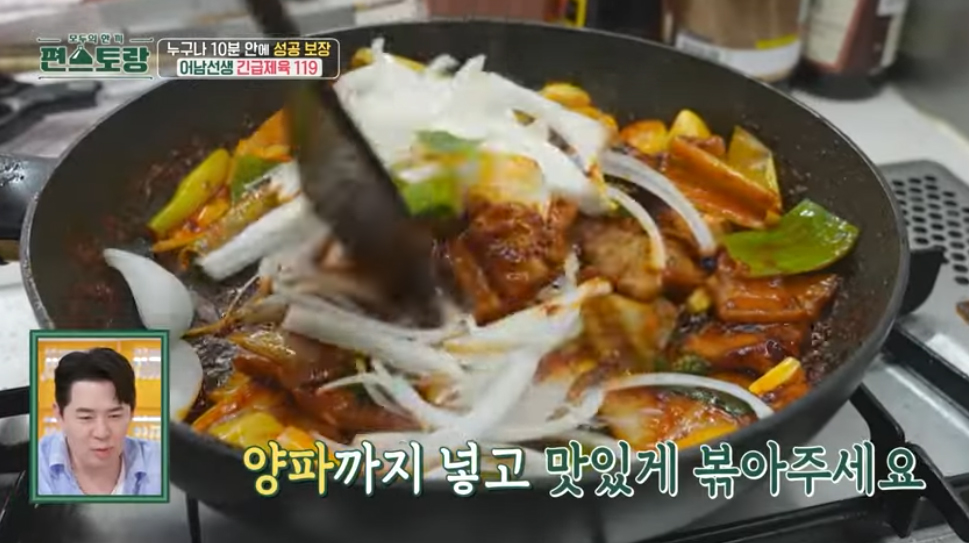 양념 투입 후 강불로 켜고 잘 섞어 주세요.